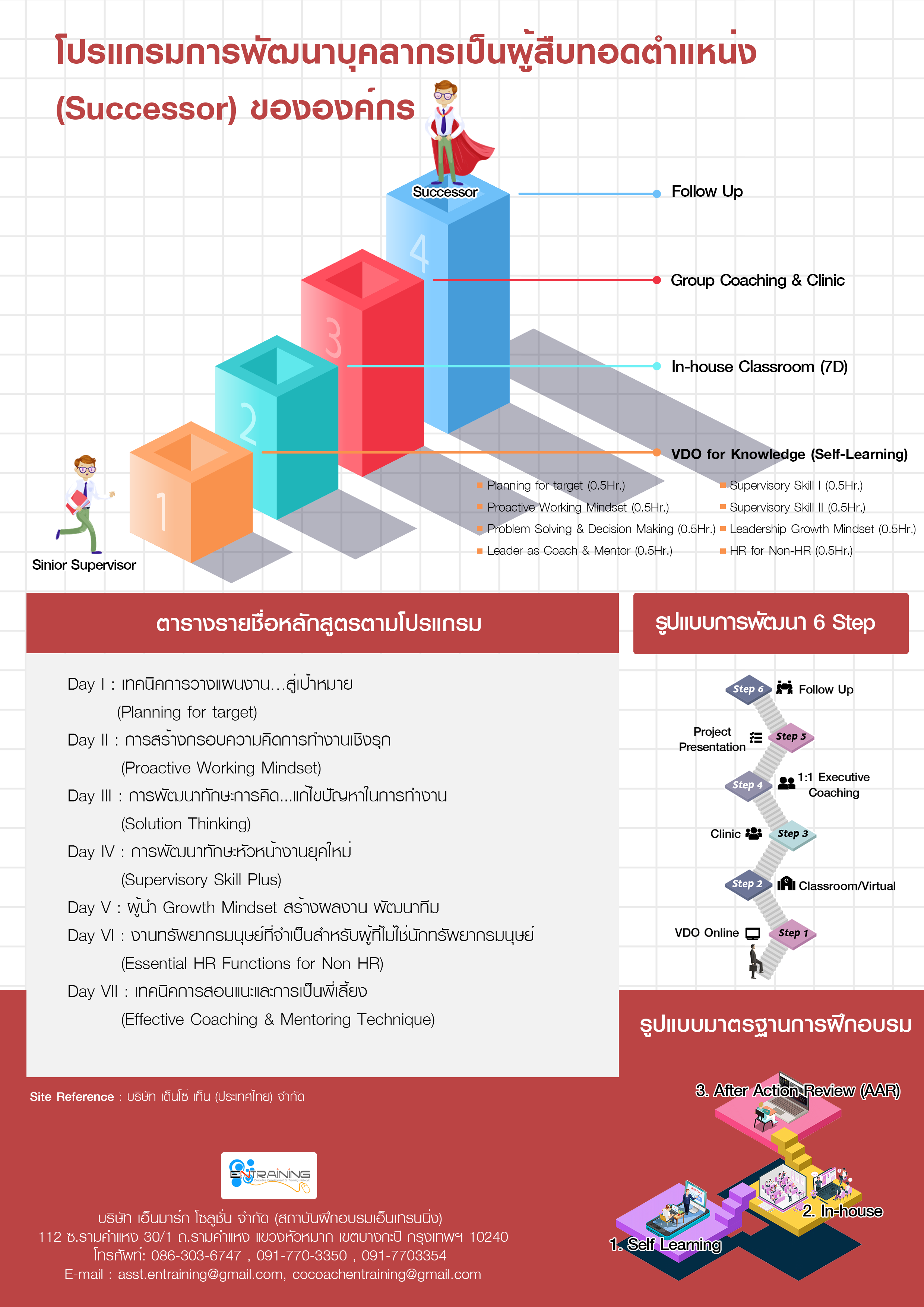 3. โปรแกรมการพัฒนาการผู้สืบทอดตำแหน่งครบวงจร (Succession Plan Step by Step) โปรแกรม 6 วัน