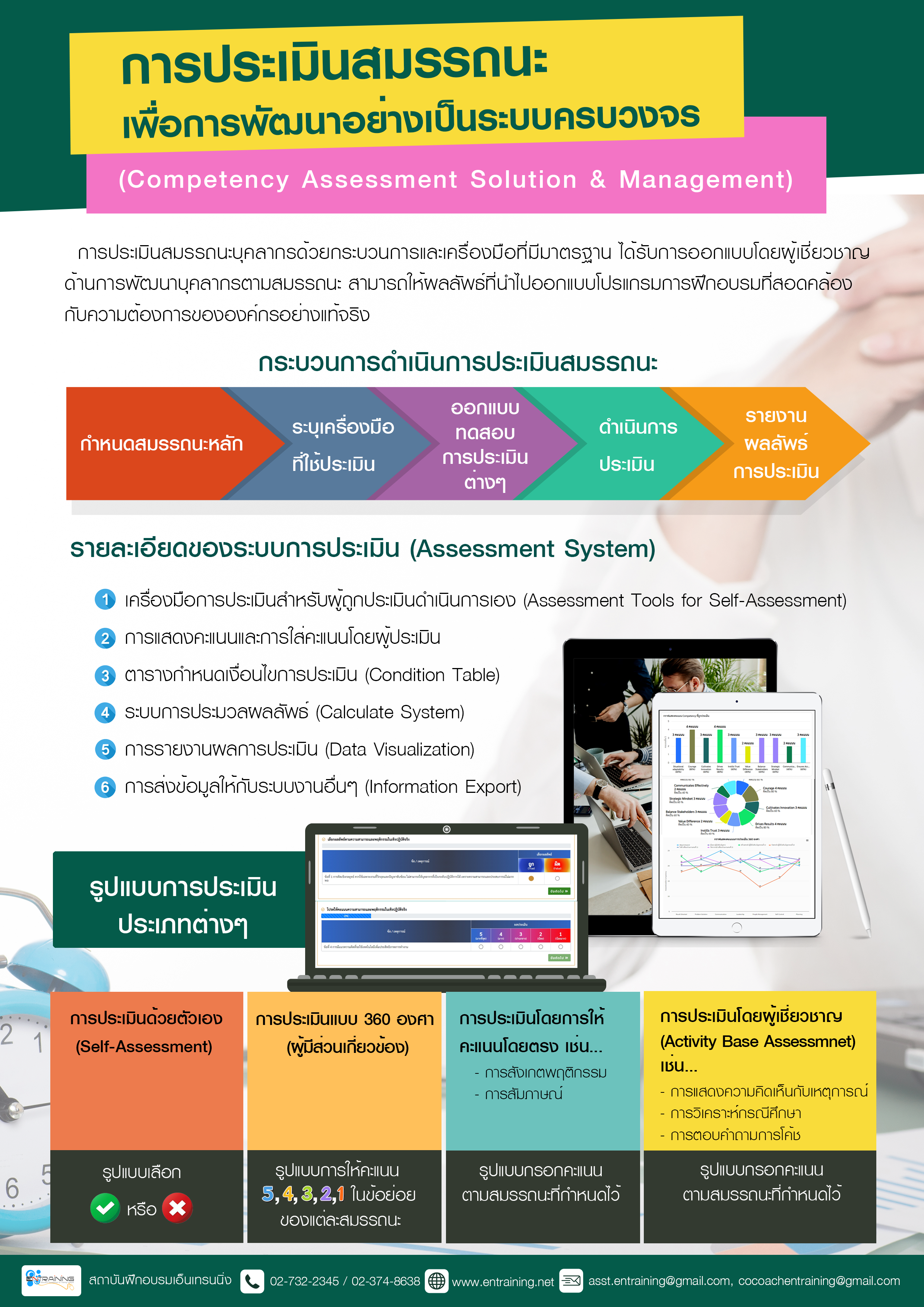 การประเมินสมรรถนะบุคลากรด้วยกระบวนการและเครื่องมือที่มีมาตรฐาน ได้รับการออกแบบโดยผู้เชี่ยวชาญ ด้านการพัฒนาบุคลากรตามสมรรถนะ สามารถให้ผลลัพธ์ที่นำไปออกแบบโปรแกรมการฝึกอบรมที่สอดคล้อง กับความต้องการขององค์กรอย่างแท้จริง