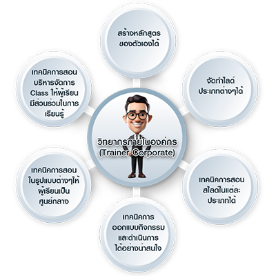 “การสร้างและพัฒนาทีมวิทยากรภายในองค์กร โดยการให้ความรู้ ทักษะ และเทคนิคกับผู้เชี่ยวชาญในสายงานขององค์กร เป็นวิทยากรภายในองค์กร