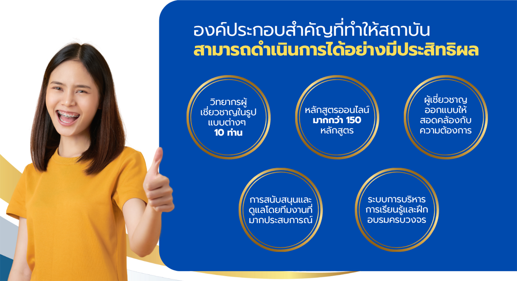 ทำให้ผู้เรียนได้ทั้งความรู้และนำไปใช้กับสถานการณ์จริงของตัวเองได้ทันที ด้วยแนวทางการดำเนินการโดยเฉพาะของสถาบัน”