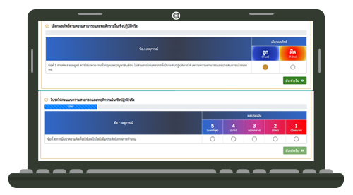 เครื่องมือการประเมินสำหรับผู้ถูกประเมินดำเนินการเอง (Assessment Tools for Self-Assessment) การแสดงคะแนนและการใส่คะแนนโดยผู้ประเมิน ตารางกำหนดเงื่อนไขการประเมิน (Condition Table) ระบบการประมวลผลลัพธ์ (Calculate System) การรายงานผลการประเมิน (Data Visualization) การส่งข้อมูลให้กับระบบงานอื่นๆ (Information Export)